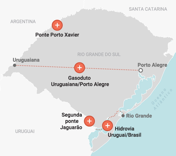 RS, fronteiriço com os vizinhos Uruguai e Argentina, poderá ser beneficiado por investimentos anunciados pelo presidente Lula; os projetos estão em diferentes etapas